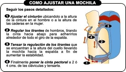 adecuar nuestra mochila (correas, cintas, cinturón) hasta que se adapte