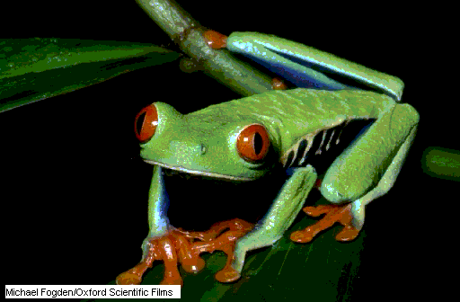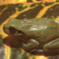 Pero no todas las ranas pueden saltar ; las hay que caminan, reptan ,corren o brincan cortas distancias, y algunas ranas arborícoras* pueden incluso volar, planear de árbol a árbol. Casi todas las ranas arborícoras* tienen discos , o almohadillas adherentes, semejantes a ventosas, en las patas para colgarse de la vegetación. |
