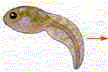 - Del huevo surge la larva o renacuajo, dotados de branquias para la respiración y de cola como los peces.