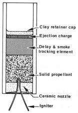 (de Estes Industries) - Corte del motor de un modelo de cohete, con indicación de los nombres de cada una de las partes.