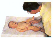 2.- Observe si está sucio. Levante las piernas del bebé