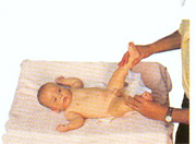 tomándolo por los pies y procurando colocar un dedo entre los tobillos; con