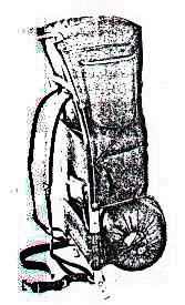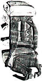 3) Recipiente rígido en forma de canasta. Es buena para guardar las cosas en el campamento, pero muy pesada para cargarla en una caminata larga. Puede ser muy buena para una excursión en canoa. Es rígida, abierta de la parte de arriba, aunque se le puede poner una tapa de lona para cubrirla, es hecha de mimbre. Es muy durable y útil para llevar cosas que se rompen con facilidad. (Fig. 4) 4) Mochila con armazón. Esta es la mejor y más cómoda para caminatas largas especialmente cuando se lleva mucho peso y es por más de un día. La tecnología de armazones para mochilas se ha desarrollado mucho durante los últimos años y cómo resultado se tienen mochilas que se ajustan mejor al cuerpo y son mas cómodas. (Fig. 5) Las mochilas de armazón rígida han sido usadas por muchos años y cuando esta estructura es externa resulta muy versátil. Este tipo de armazón generalmente se hace de aluminio muy liviano y no son muy costosas. Otras más caras se hacen de magnesio que es super liviano o de otros materiales sofisticados. Para muchos la mejor armazón rígida externa es la que lleva un cinturón lo cual permite una mejor distribución del peso ya que le quita peso a los hombros y la espalda y lo pone sobre la cadera o cintura. Este estilo no funciona bien con todos pues quienes tienen la cadera angosta sufrirán con el cinturón. (Fig. 5)