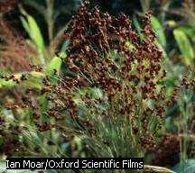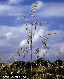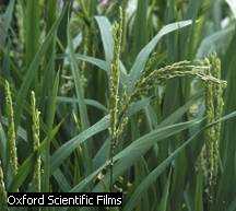 Gramíneas, nombre común de una extensa familia de plantas con flor, la más importante del mundo desde los puntos de vista económico y ecológico. A esta familia también se la conoce con el nombre de Poáceas. Las gramíneas presentan una estructura vegetativa bastante uniforme, y tienen características distintivas de este grupo. Las hojas, que nacen en los nudos de los tallos, se disponen en dos filas y constan de dos partes: vaina y limbo. La vaina, una característica peculiar de las gramíneas, envuelve el peciolo y sujeta la zona situada justo por encima de cada uno de los nudos; esta zona necesita soporte, pues está formada por un tejido de crecimiento blando llamado meristemo. El tallo de las gramíneas no crece en longitud por el ápice, como en casi todas las demás plantas, sino en cada uno de los nudos. Otra característica distintiva de las gramíneas es la lígula, una breve prolongación vellosa o membranosa que se inserta en el punto de unión de la vaina y el limbo foliares. La función de la lígula sigue siendo desconocida, pero quizá sirva para evitar que la humedad penetre en la zona comprendida entre el tallo y la vaina. El limbo foliar es típicamente largo y estrecho, con nervios paralelos, aunque presenta grandes variaciones de forma y tamaño. También tiene un área meristemática, situada en la base, por encima de la unión con la vaina; el crecimiento se produce en esta zona y no en el ápice, al contrario de lo común en casi todas las demás plantas. Esta peculiaridad, combinada con la presencia de tejido meristemático en los nudos de los tallos y el hecho de que las gramíneas se ramifiquen cerca del suelo. Las flores de las gramíneas suelen ser inconspicuas, pero casi siempre se agrupan en grandes inflorescencias, a veces vistosas. Así, en el maíz, la mazorca joven es una espiga de flores femeninas y la espiguilla es una panícula de flores masculinas. Casi todas las gramíneas son de polinización anemófila, y por ello tienen flores muy sencillas y reducidas, como es frecuente entre las especies polinizadas por el viento. por su tamaño insignificante. Las raíces principales suelen ser fibrosas; las secundarias o adventicias brotan en muchos casos de los nudos de los tallos, como ocurre en el maíz. Los tallos son por lo general herbáceos (gramíneas de césped) o huecos (bambú), pero hay excepciones, como los tallos medulares del maíz y los leñosos de algunos bambúes. La familia de las gramíneas contiene unos 635 géneros y 9.000 especies, y es la cuarta más extensa después de Leguminosas, Orquidáceas y Compuestas. Las gramíneas son monocotiledóneas, porque la semilla presenta una sola parte. Las hojas presentas vainas, caso característico de las gramíneas. El limbo foliar es típicamente largo y estrecho, con nervios paralelos, aunque presenta grandes variaciones de forma y tamaño. También tiene un área meristemática, situada en la base, por encima de la unión con la vaina; el crecimiento se produce en esta zona y no en el ápice, al contrario de lo común en casi todas las demás plantas. Por tanto, incluso si se corta el extremo superior de la hoja, el limbo puede continuar creciendo. Esta peculiaridad, combinada con la presencia de tejido meristemático en los nudos de los tallos y el hecho de que las gramíneas se ramifiquen cerca del suelo, permite a estas plantas soportar los rigores de muchos medios naturales y artificiales inaccesibles a otras especies vegetales. El trigo es una planta anual alta, de 1,2 m de altura por término medio. Las hojas, parecidas a las de otras gramíneas, brotan muy pronto y van seguidas por tallos gráciles rematados por las espigas de grano. Arroz, nombre común de un grupo de unas 19 especies de hierbas anuales de la familia de las Gramíneas. El arroz común es la única especie importante para la humanidad. Centeno, nombre común de un cereal anual de la familia de las Gramíneas, próximo al trigo y la cebada Grama, nombre común de una herbácea perenne (Cynodon dactylon) de tallos rizomatosos y rastreros que con frecuencia forma céspedes. La grama de olor (Anthoxanthum odoratum) es también una herbácea perenne muy olorosa. Negrillo,que corresponde a la especie Lolium perenne, que es muy usada para el césped