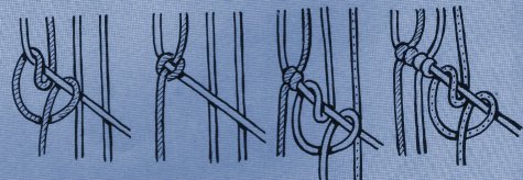 3. PRESILLA DE ALONDRA : Mayormente este es el primer nudo que hacemos al empezar un trabajo en macrame, sirve para sujetar las cuesdas a una varilla.