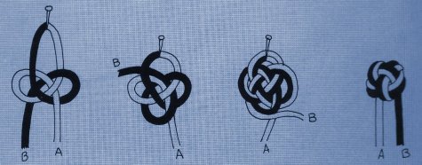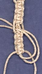 4. DOS MEDIOS COTES : Este es un nudo muy decorativo, en caso de que las cuerdas sean muy delgadas como la lana de tejido, podemos tomar dos cuerdas y trabajar como si fuera una sola, y veras que es mas facil y mas rápido hacerlo.
