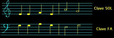 Escribir una clave de sol y una en clave de fa.