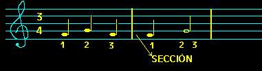 Después de cada barra de sección empieza el primer tiempo.