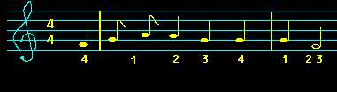 siguiente pentagrama de composición 4/4 la primera nota empieza en