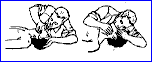 Elemento extraño en el ojo No resfregar el ojo. Enjuaguar con agua limpia el interior del ojo. Si puede ver el elemento extraño, humedecer la punta de una toalla limpia y cuidadosamente retirar el elemento extraño de la superficie del ojo. Si el elemento extraño estuviera en la pupila o pegado a la superficie del ojo, o se ve que es un objeto afilado, debe procurar ayuda médica con urgencia. Quemaduras por produtos químicos: lavar inmediatamente con agua y procurar ayuda médica con urgencia. Elemento extraño en la nariz y los oídos Elementos extraños en los oídos o en la nariz deben ser removidos por un médico. Fracturas Las fracturas pueden ser causadas por acción directa (golpe o caída), indirecta (la fractura ocurre en un lugar diferente al golpe) o acción muscular (la rótula de la rodilla se puede quebrar por causa de un movimiento brusco o tropezón). Las fracturas serán reconocidas por dolor o incomodidad de la región afectada, hinchazón, pérdida del movimiento del miembro, deformidad, irregularidad del hueso, movimiento no natural y un sonido de raspadura que la persona herida puede sentir. Las dos últimas señales nunca deben ser conseguidas deliberadamente. Las fracturas son clasificadas como simples, cuando la superficie de la piel no se rompe; expuestas, cuando hay una herida visible; y complicadas, cuando la fractura, cerrada o expuesta, está asociada a una herida alcanzando una parte importante del cuerpo, como el cerebro, pulmones, un nervio o arteria, exigiendo tratamiento prioritario. Si hubiesen dudas, trate la herida como fractura. A menos que la vida corra peligro por causa del fuego, inundación u otros riesgos, NO MUEVA a la víctima antes de tratar las heridas e inmovilizar la fractura, si es que la hay. En todos los casos de fractura, existe el riesgo de empeorar si un miembro o parte del cuerpo se mueve antes de ser inmovilizado. La inmovilización puede hacerse apoyando el miembro herido en una posición lo más natural posible, con vendas y cabestrillos. Fractura de clavícula En un caso de fractura de clavícula, la víctima muchas veces apoya el codo para aliviar el dolor e inclina la cabeza en dirección al lado afectado. Una causa común es caer sobre el hombro o la mano extendida. · Remover y aflojar la ropa del lado herido. · Colocar un elemento blando bajo la axila. · Colocar una venda larga bajo la axila del lado derecho, por sobre el hombro y amarrar atrás de la cabeza. · Repetir el procedimiento para el lado izquierdo. · Tomar una tercera venda y amarrar las puntas firmemente entre los omóplatos. · Verificar si la circulación en los pulsos es normal. Fractura del húmero · Colocar un cabestrillo en el cuello y muñeca. · Colocar una tela suave entre el codo y el pecho. · Amarrar el miembro firmemente al cuerpo, primero arriba de la fractura y después abajo. · Verificar el pulso para saber si la sangre está circulando por el brazo. Fractura del brazo o pulso · Colocar un tabique en la parte inferior o superior del antebrazo - debe extenderse desde el codo hasta la punta de los dedos. · Amarrar el miembro firmemente al tabique con tres vendas; la primera entre la fractura y el codo, la segunda entre la fractura y la mano, y la tercera apoyando la mano con el tabique. · Colocar cabestrillo en el brazo. · Verificar el pulso. Vendajes Vendaje triangular para la cabeza · Doblar una barra para dentro, a lo largo de la base de la venda. · Colocar la base del triángulo sobre la frente, llevando los extremos alrededor de la cabeza y cruzando por atrás, haciendo con que se encuentren de nuevo al centro de la frente. · Amarrar los extremos. · Traer la punta para arriba y asegurarla con un alfiler. Vendaje en la mano abierta · Doblar una barra a lo largo de la base del vendaje. · Colocar la mano con la palma hacia abajo sobre la venda, de manera que el pulso quede en la base del triángulo y las puntas de los dedos hacia el vértice. · Virar el vértice sobre la parte trasera de la mano. · Enrollar el resto de la venda. · Amarrar los extremos al otro lado del pulso. Vendaje para el pie Es semejante al vendaje en la mano abierta. · Colocar el pie sobre la venda de modo que el talón esté vuelto hacia la base y los dedos hacia el vértice. · Traer el vértice para la parte alta del pie. Cabestrillo de muñeca y cuello Cabestrillo de muñeca y cuello · Colocar el antebrazo atravesado sobre el pecho, con los dedos en la dirección del hombro contrario. · Hacer un cote, o media mallla, sobre la mano y alrededor de la muñeca, con el nudo del cote sobre el lado del pulgar y un doblez de la venda a cada lado de la muñeca. · Amarrar los extremos de la venda por encima de la clavícula. · Verificar el pulso. · Este cabestrillo sirve de apoyo para la muñeca. · Si el hombro también hubiera sido dañado, lleve la extremidad inferior de la venda por sobre el antebrazo y bajo el hombro del lado herido y amarre los dos extremos con un nudo. Así, todo el peso del brazo herido será soportado por el hombro sano. Ud. debe ser capaz de aplicar un cabestrillo con el herido acostado. · Colocar el extremo de una venda triangular sobre el hombro del lado herido. · Dejar la venda colgando sobre el pecho con el vértice al nivel del codo del brazo herido. · Doblar el codo del brazo herido sobre la venda, con la mano elevada cerca de 10 cm por encima del codo y las puntas de los dedos extendiéndose más allá de la base de la venda. · Llevar el extremo inferior de la venda sobre el antebrazo y hombro del lado herido, amarrando los dos extremos al lado del cuello. · Llevar el vértice de la venda hacia adelante y prender con un alfiler. Vendaje para el pecho o la espalda · Coloque una venda triangular contra el pecho (o la espalda), de modo que el vértice quede a la altura del hombro. · Pídale al paciente que sostenga el vértice. · Ahora doble la base para adentro, hasta la altura deseada. · Lleve los extremos alre