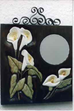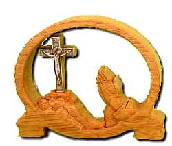 4.- Elementos de afilado: piedras de afilar y asentar.- Para el trabajo de la talla resulta imprescindible el perfecto afilado y asentado de las herramientas de corte. Esta es una labor que se puede realizar mecánica y manualmente. El afilado mecánico se reduce a la utilización de una esmeriladora eléctrica. Los mejores resultados se consiguen con piedras refrigeradas por agua y de baja revolución; con ello se logra que el acero de la herramienta no se destemple y además se tiene mayor control visual sobre el proceso. Lo mismo podemos obtener utilizando una piedra de afilar al agua o al aceite y bastante paciencia, hasta rehacer el filo de la herramienta y el bisel adecuado para el trabajo que vamos a realizar (ángulo mayor para maderas duras y menor para las blandas). No obstante, ésto no es suficiente para la precisión de corte que necesita el tallista en su herramienta. Es imprescindible el proceso de afinado o asentado de la misma, el cual se consigue utilizando una piedra de grano finísimo lubricada con aceite. Se utilizará una piedra plana para los formones y los biseles exteriores de las gubias y piedras con formas específicas para los interiores. Tras este proceso, en el cual se desprende la rebaba residual del afilado previo, la herramienta estará preparada para trabajar, pudiendo probar si el afilado ha sido correcto cortando a contraveta una madera blanda, por ejemplo el pino; Si el corte es limpio y suave y no quedan grietas en la madera, la herramienta está preparada para su uso. Existen artesanos que tras este paso todavía realizan otro, que consiste en el suavizado a base de una tira de piel o cuero tratados con óxido de hierro y sebo. 5.- Elementos de acabado: imprimaciones, tintes, ceras y barnices.- Para el acabado de la pieza, es imprescindible tratarla para realzar su belleza y para protegerla en lo posible del paso del tiempo. Para ello utilizaremos imprimaciones a base de sustancias fungicidas e insecticidas que ayuden a que nuestra obra no sea fácil pasto de los hongos e insectos xilófagos. También podemos utilizar los tintes, anilinas o colorantes que consideremos apropiados para realzar la belleza de nuestra obra, creando efectos de envejecido o simplemente tiñendo la madera para conseguir tonos más agradables o imitar a maderas distintas (nogal, caoba,...). Por último, deberemos decidir el tratamiento de acabado que le vamos a dar a la obra. Éste puede ser cera, en cuyo caso yo recomiendo la utilización de cera natural de abejas diluida en esencia de trementina (aguarrás puro), o a base de barnices, donde recomiendo que nos informemos en nuestro distribuidor habitual de pinturas, ya que hay en el mercado numerosas marcas, variantes y composiciones distintas, ya sea para obras que van a estar en el exterior o en el interior, para muebles lisos o profusamente tallados, para dar a brocha o pistola, etc. Ejemplos de Tallado en Madera