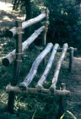 | ¿Dónde tender la ropa o las toallas? No hay otro lugar mas que el toallero. Construccion imprescindible, que puede hacerse de distintas maneras, entre dos árboles o con un soporte propio