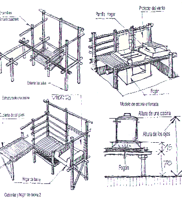 Debe tenerse en cuenta al construirlas colocarles algún material para tapar el viento, ya que sin ésto es muy probable que el fuego no se encienda . Se debe dejar un espacio para tener los víveres .