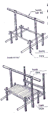 | Las mesas son construcciones complicadas , y es recomendable no hacerlas en campamentos cortos, salvo que sean muy simples como la figura 1