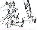 Conviene tener un taco o un tronco para usarlo como apoyo para cortar la leña con el hacha.