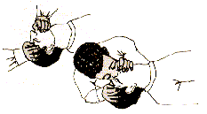- El encargado de dar los soplos inicia con dos respiraciones, verifica la respiración y pulso, si no están presentes el otro auxiliador inicia con 5 compresiones en el pecho, mientras se realiza este procedimiento el otro auxiliador cuenta en voz alta "y uno, y dos,y tres, y cuatro y cinco." con el fin de mantener el ritmo. al terminar las cinco compresiones el otro auxiliador da un soplo y se continua la maniobra con ciclos de cinco compresiones y un soplo.