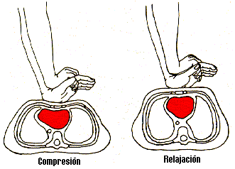 Hacer un masaje externo del corazón comprimiendo el esternón (hueso que une las costillas) hacia la columna vertebral.